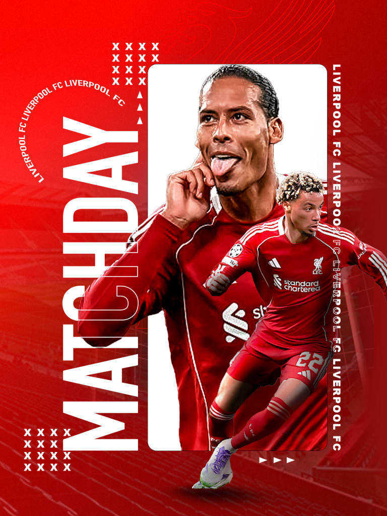 Création d’une affiche « Matchday » pour le Liverpool FC. L’objectif était de concevoir un visuel percutant et dynamique pour annoncer un jour de match, en utilisant les couleurs et l’identité visuelle du club.